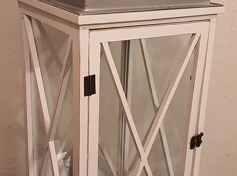 Deko Holz Laterne 86x31cm Gartenlaterne Große Hängeleuchte Shabby ShickVP. 40,- €, Rießenlaterne ca. 86x31cm aus Holz im Shabby-Shick-Stil. Unterboden aus Blech u. an der Spitze mit Luftauslass - für Verwendung mit Kerzen geeignet.