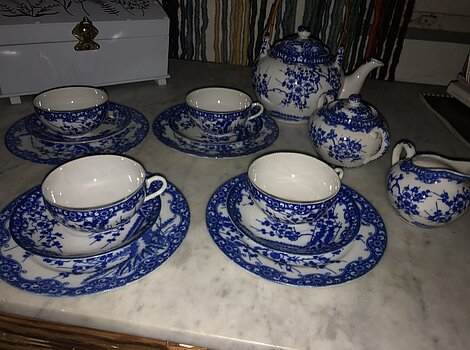 Tee-ServiceSehr feines Teeservice mit Teekanne 4 Tassen/ Teller/ Kuchenteller, Zuckerfose/ Kännchen abzugeben für 30 Euro