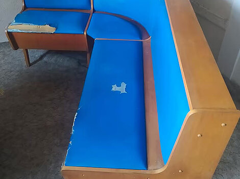 Ältere EckbankSolide Eckbank von 1980 mit viel Stauraum zu verkaufen. Sie muss auf jeden Fall neu bezogen werden.