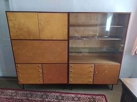 DDR-Schrankwand zu verschenkenGeräumige Schrankwand ca. 50 Jahre alt, aber gut erhalten. Bietet viel Stauraum. Gesamtmaße ca. 382 cm breit, 246 cm hoch, 45 tief. Die Schrankwand ist in der Höhe dreiteilig, so dass sie auch nur tei ...
