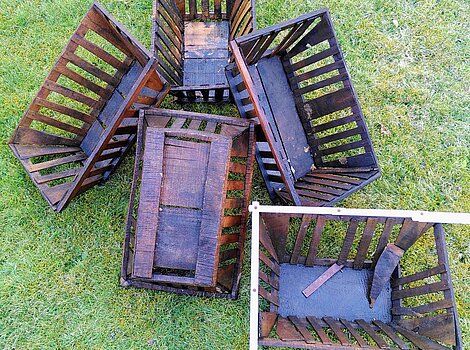 Das Holz ist sehr dünn und die Nägel alt, die Kisten sind nur leicht belastbar und müssen sonst ggf. nachgenag ...