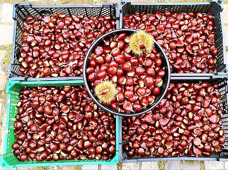 Eßkastanien / MaronenEsskastanien / Maronen, frisch aus dem Garten (in Sachsen) zu verkaufen. Die Esskastanien können geröstet oder roh verzehrt werden. Auch als Aufstrich oder für Füllungen sind sie beliebt. Für spätere ...