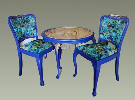 Die Stühle wurden komplett neu gepolstert (incl. neuer Federkorb) und das mal vorhandene defekte Korbgeflecht in der Lehne wurde durch Po ...