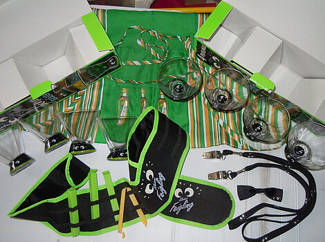 Dieses “Kleiner Feigling“- Set ist alles nagelneu, die 8 Gläser noch Original Verpackt (s. Fotos). Der Gürtel ist mit Klettverschluss und für 10 Likör Flächelche ...