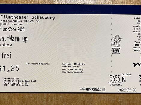 Verkaufe 2 Karten f. Humorzone am 11.3.26 (Schauburg)Ich habe 2 Karten für ein Comedy Mix in der Schauburg für den 11.3. (19:30 Uhr) abzugeben. Ich bin selber in der Woche leider nicht in Dresden, kann es deshalb leider nicht wahrnehmen.