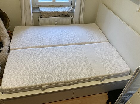 2 Matratzen je 80 x 200 cm, Härte 2, Schlaraffia, GelschaumDie Matratzen wurden im Juli 2023 angeschafft. Nicht jede Nacht schlief jemand im Bett, im letzten halben Jahr niemand. Die Matratzen sehen sehr gut aus, sind nicht eingestaubt, zwischen ihnen und dem ...