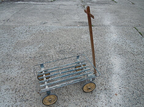 Dieser Bollerwagen mit Metallstreben erfüllt seine Transporte mit Belastung hervorragend. Keine lauten Geräusche beim Fahren. Keine Holzstreben sondern belastbarer Boden aus Metallstreben.
