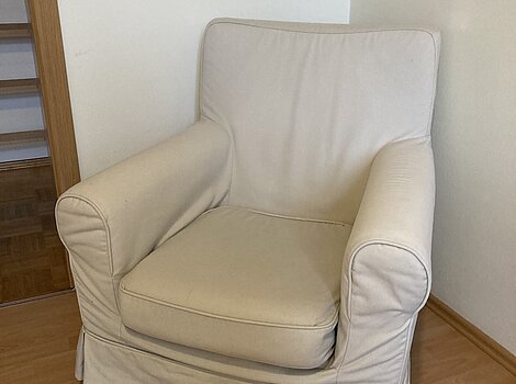 Sessel Ektorp Ikea - weißDer Sessel sieht sehr gut aus, der Bezug ist bei Kauf gewaschen. Die Maße: 75 cm Breite, 70 cm Tiefe, 85 cm Höhe bis Oberkante Lehne.