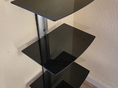 Regal - Wandregal - Glasregal - HiFi-Regal mit verdecktem KabelDas stilvolle Regal ist mit verdeckter Kabelführung in der Wandschine und 3 schwarzen in der Höhe verstellbaren Glasböden ein "edler Hingucker" der nicht auf dem Fußboden steht. Die Ausführung ist seh ...