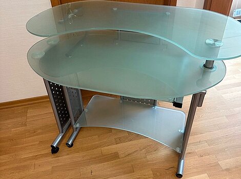Glas- Schreibtisch ausziehbar zu verschenkenSchreibtisch ausfahrbar.