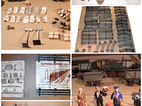 historische Märklin- / Bing ModelleisenbahnVerkaufe alte Märklin und Bing Eisenbahn – Teile, Modelleisenbahn Spur 0, Konvolut aus 1 Lokomotive, 17 Wagen, 8 Figuren, 1 Bahnhof, 1 Bahnsteigkiosk, 1 Schrankenwärterhäuschen, 1 Richtungsanzeiger, ...