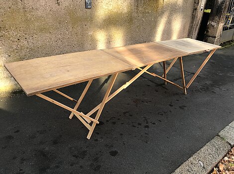 DDR Retro Tapeziertisch aus massivem Holz 3 m klappbar robust VintageBiete ein absolutes Highlight für Liebhaber von authentischem Vintage-Design und Industrial-Look: