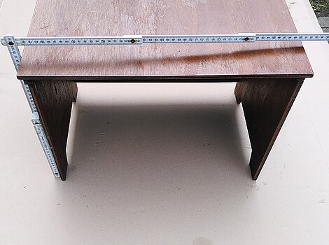 klappbarer Tisch / FalttischchenVerkaufe alten, kleinen, klappbaren Tisch, zum Beispiel für Marktstand, solide gearbeitet, furniertes Sperrholz, nicht verzogen, Klavierbänder als Scharniere, Breite etwa 0,5m, Tiefe und Höhe etwa je ...