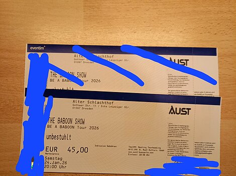 verkaufe eine 1 Karte á 35,00 € für das Konzert der schwedischen Punk/Rock-Band "The Baboon Show", welches heute Abend im "Alten Schlachthof" Dresden stattfindet.