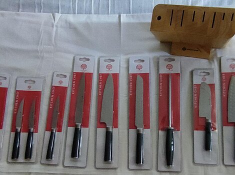 10 teiliges Messerset von Schulte-Ufer "Kitchen Chef" schwarz - neu in OriginalverpackungAngeboten wird ein 10 teiliges Messerset von Schulte-Ufer "Kitchen Chef" Edelstahl / schwarzer Griff, neu und originalverpackt. Habe es geschenkt bekommen, benötige es aber wegen genügend anderer Best ...