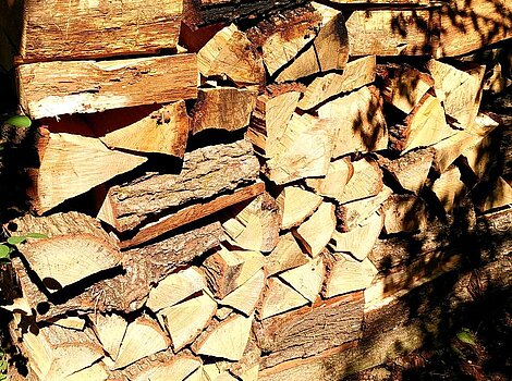 entweder als fertig gespaltenes Kaminholz in Längen von max. 50cm