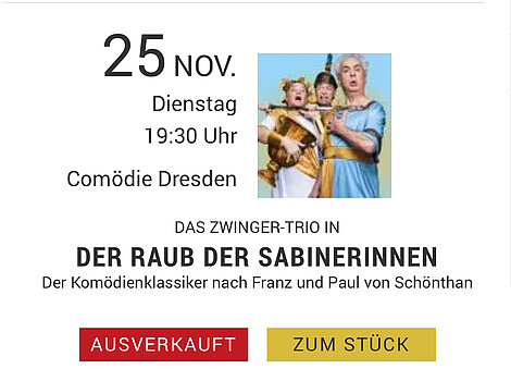 2x / 4x Der Raub der Sabinerinnen, DD 25.11.2025, Zwinger Trio / AusverkauftComödie Dresden