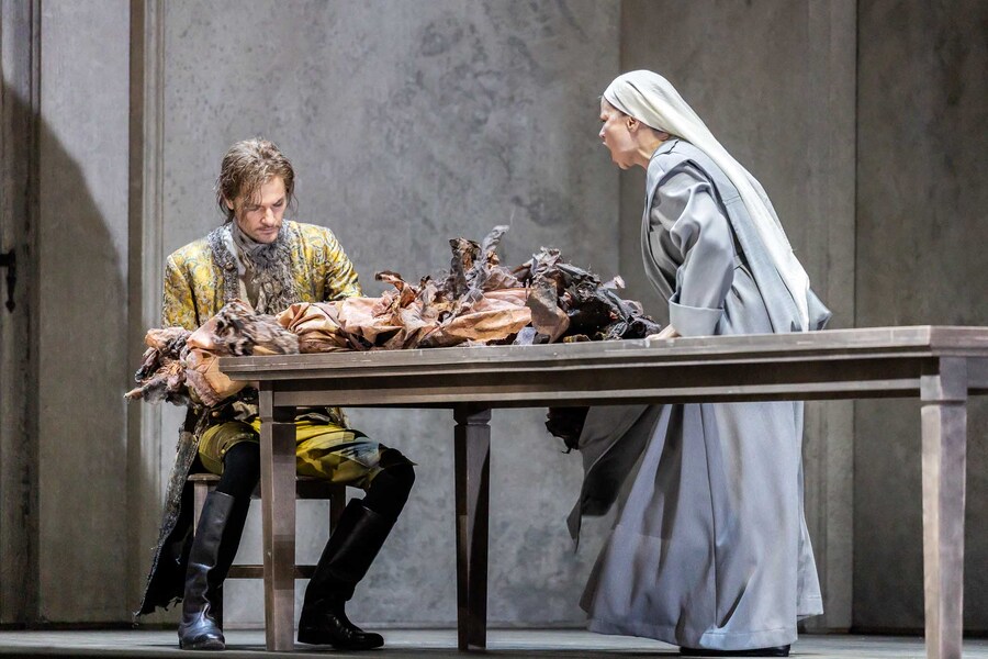 Wenn nach dem letzten Ton geschwiegen wird, ist das ein gutes Zeichen im Musiktheater. Die Menschen sind berührt, vom Bühnengeschehen ergriffen und lassen das Kunsterlebnis erst einmal nachklingen. Diesem Schweigemoment ist nach der Premiere von Francis Poulenc’ Meisterwerk »Dialogues des Carmélites« (»Dialoge der Karmelitinnen«) in der Semperoper ein Sturm der Begeisterung gefolgt. Zu Recht, aber nicht unbedingt selbstverständlich bei solch einem Ausnahmewerk: Inhaltlich, musikalisch und auch besetzungstechnisch stellt dieser 1957 an der Mailänder Scala uraufgeführte Dreiakter größte Anforderungen und gerät daher nur relativ selten in die Spielpläne. An der Semperoper hat man es jetzt gewagt und die »Dialogues des Carmélites« als Übernahme aus Zürich im französischen Original herausgebracht.